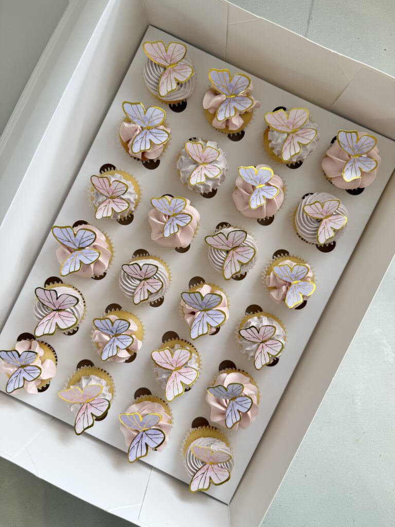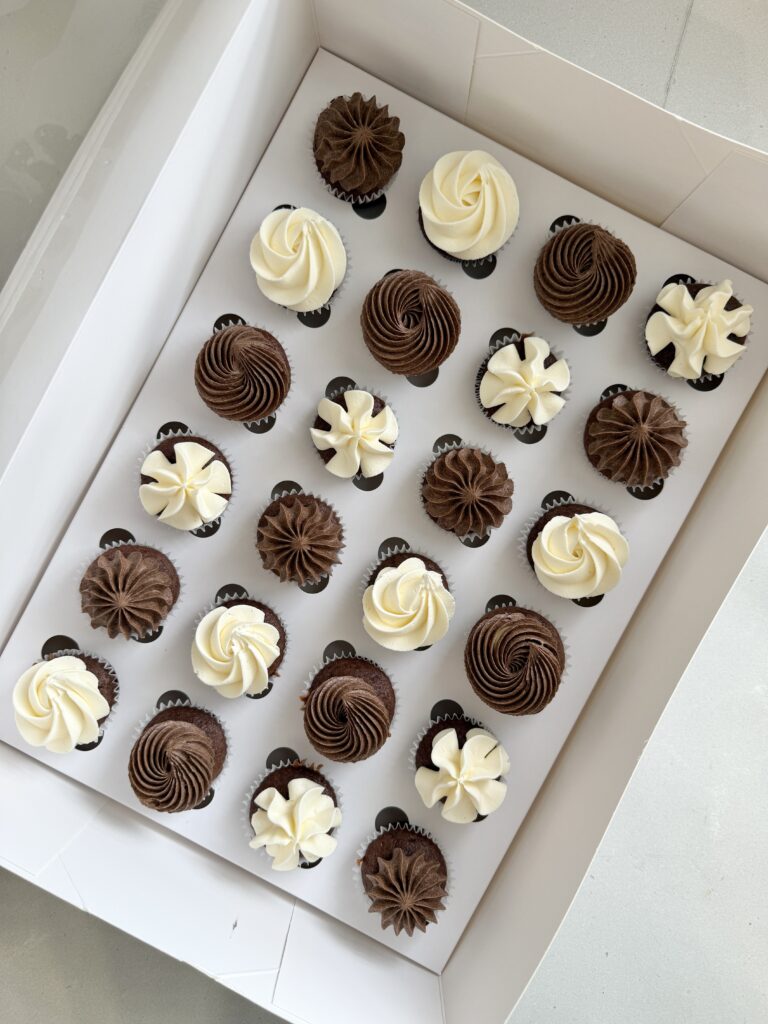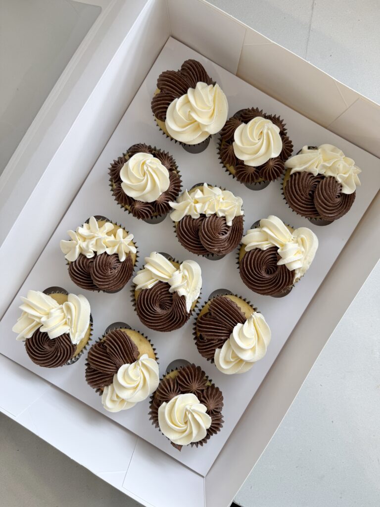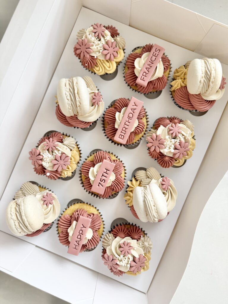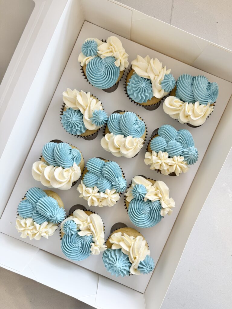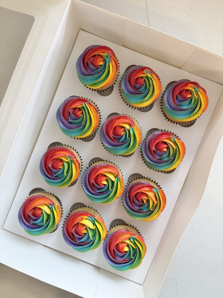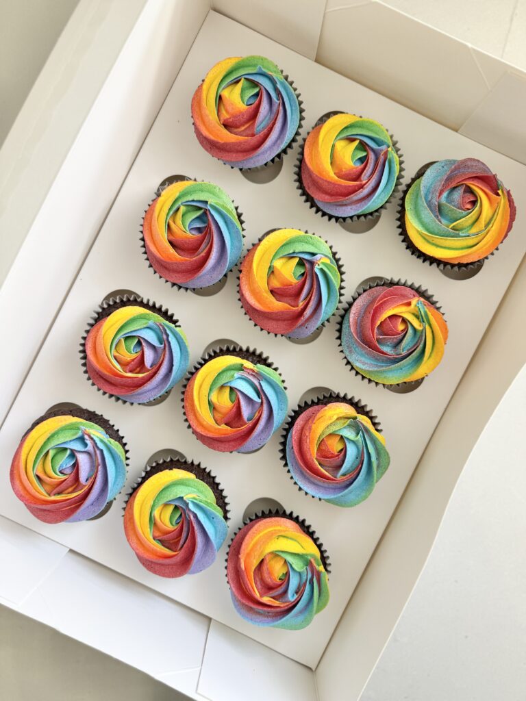 Your choice of colours piped into a gorgeous rosette pattern onto the cupcake.